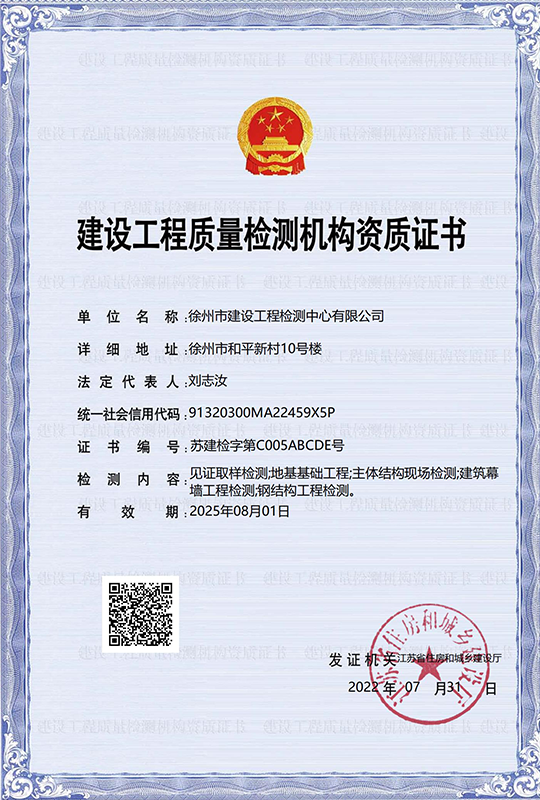 徐州市建設(shè)工程檢測(cè)中心有限公司(以下簡(jiǎn)稱(chēng)徐建檢測(cè)公司)是徐州市產(chǎn)城發(fā)展集團(tuán)有限公司(以下簡(jiǎn)稱(chēng)產(chǎn)城集團(tuán))的全資子公司。徐建檢測(cè)公司前身為徐州市建設(shè)工程檢測(cè)中心,2018年事轉(zhuǎn)企改制,2020年4月,完成轉(zhuǎn)企改制資產(chǎn)劃轉(zhuǎn)工作。 徐建檢測(cè)公司是集檢測(cè)、檢驗(yàn)、鑒定、咨詢(xún)等技術(shù)服務(wù)為一體、具有獨(dú)立法人資質(zhì)的綜合性第三方服務(wù)機(jī)構(gòu)。公司主要從事建設(shè)工程領(lǐng)域相關(guān)工程質(zhì)量檢測(cè)及技術(shù)咨詢(xún)服務(wù),業(yè)務(wù)覆蓋地基基礎(chǔ)、建筑材料、建筑結(jié)構(gòu)、鋼結(jié)構(gòu)工程、市政工程、綠色建筑節(jié)能工程、建筑安全與施工設(shè)備、建筑防水、建筑水電、裝飾裝修、建筑物防雷、室內(nèi)環(huán)境、房屋安全鑒定、城市軌道交通工程等專(zhuān)業(yè)領(lǐng)域。......